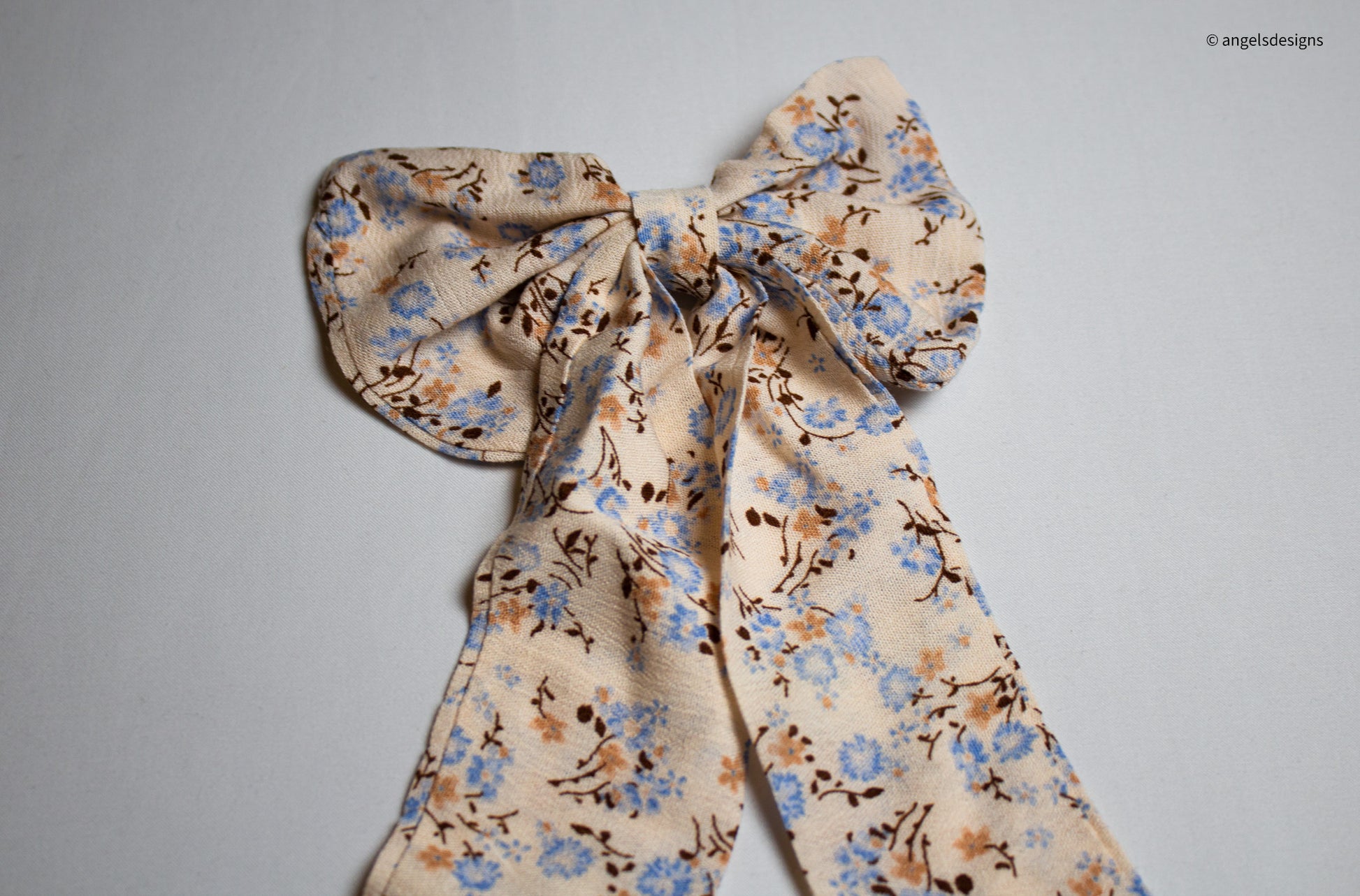These floral print hair bows with tails are crafted from leftover jersey knit fabric scraps from our fall dress, ensuring each piece is soft, smooth, and eco-friendly. Designed for all-day comfort, they feature a sturdy metal alligator clip that holds securely on all hair types. Add a touch of effortless charm to your look while embracing sustainable style.